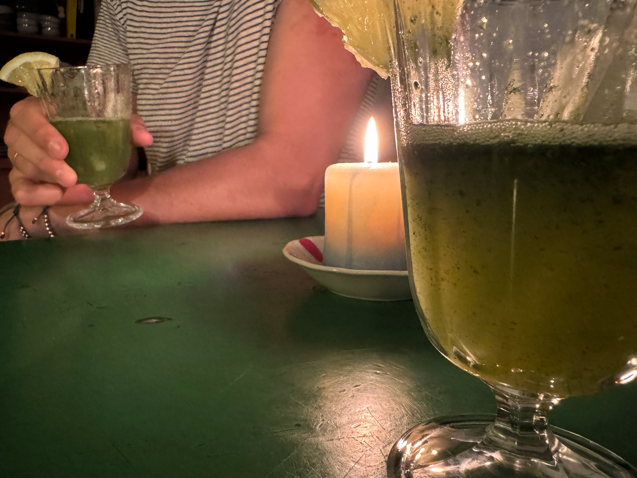 1 kleiner Bund Brennnesseln | 1 Daumengrosses Stück Ingwer | 4-5 Stile Minze | 2 Bio Zitronen | 4-6 EL Ahornsirup | 1/2 l Apfelsaft | 1/2 l Mineralwasser