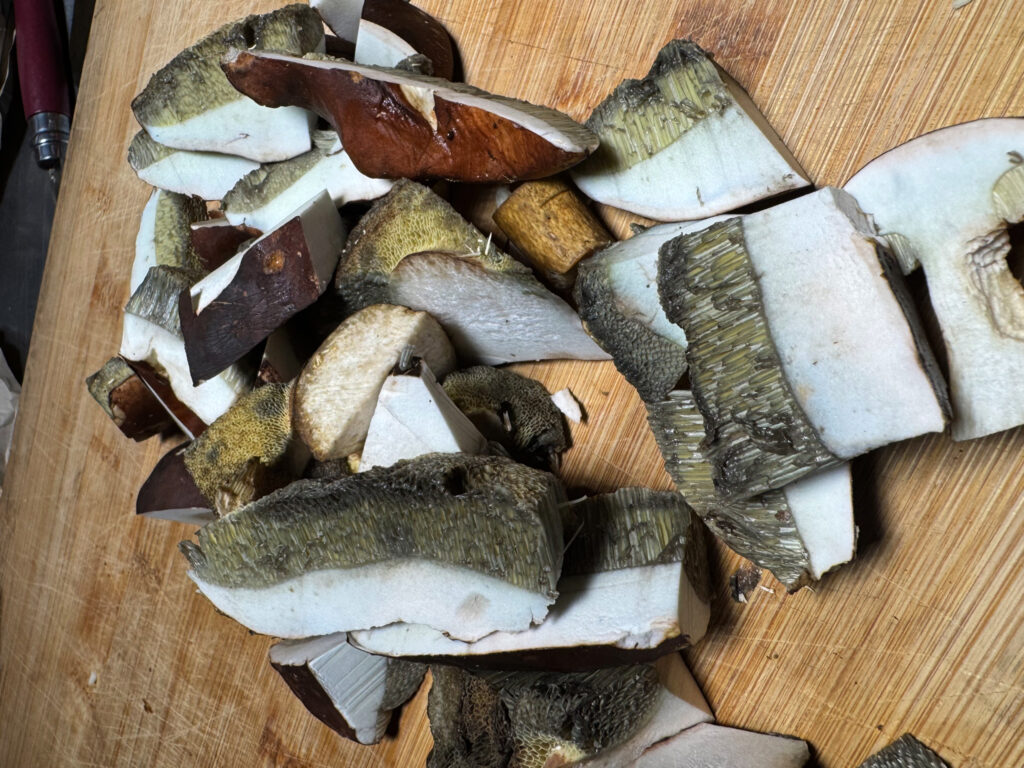 Dazu brachte Hiro frisch gesammelte Wildpilze mit – darunter Steinpilze, Pfifferlinge, Hexenröhrlinge, Maronenröhrling und noch einen geheimnisvollen Vertreter, dessen Name mir gerade entfallen ist, aber die Geschmäcker all der WildPilzköstlichkeiten bleibt unvergesslich.