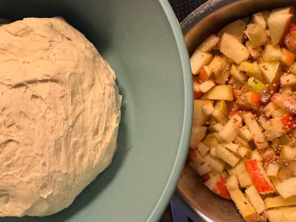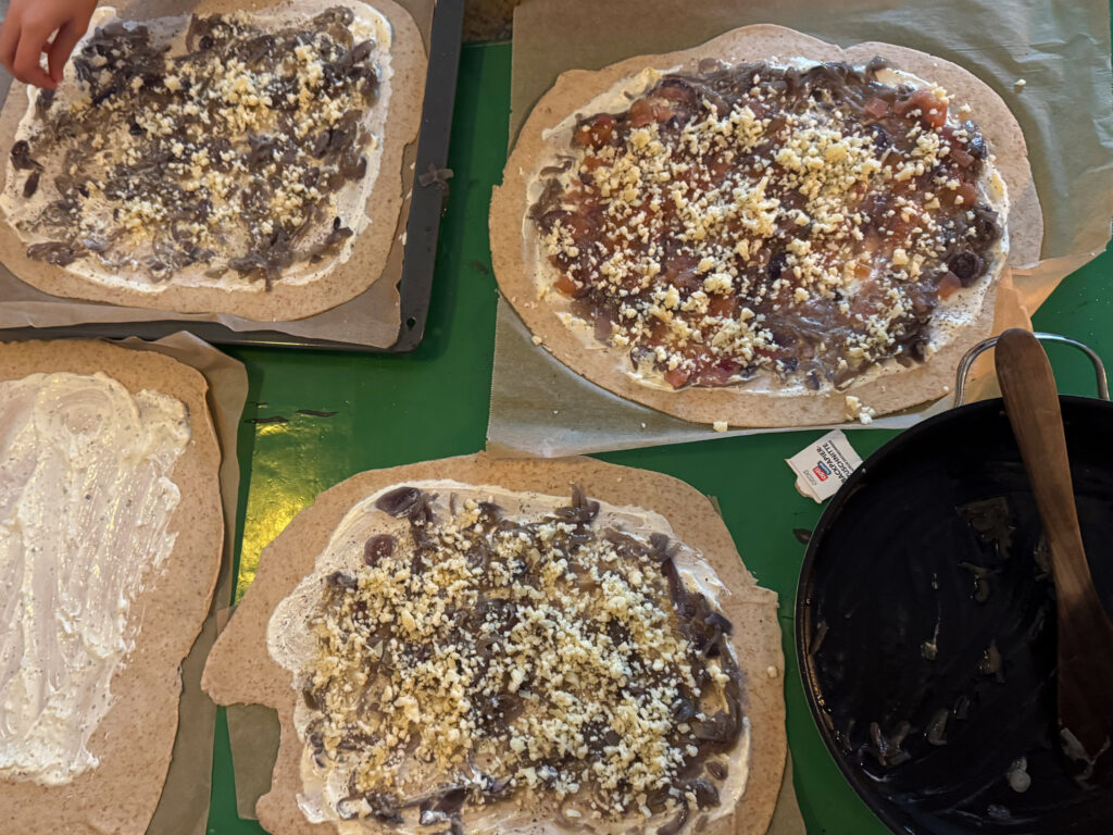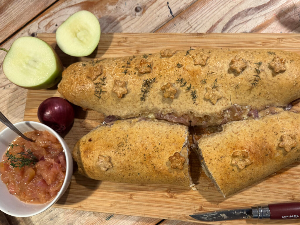 In dieser herbstlichen Variante trifft die sanfte Süße karamellisierter Zwiebeln auf würzigen Käse und fruchtiges Apfelchutney. Der Teig darf über Nacht im Kühlschrank ruhen – das macht ihn aromatischer und zarter. Am nächsten Tag duftet es dann nach Wärme, Geborgenheit und einem kleinen Stück Zuhause. Diesmal mein Beitrag zu unseren herbstlichen Essbarkeiten …
