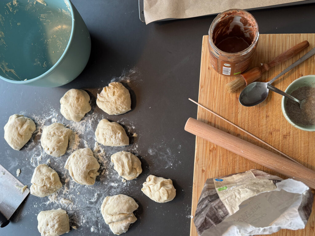 Ein freier Sonntag. Kein Plan, einfach Zeit, warme Getränke, kuschelige Socken und den Duft von frisch Gebackenem in der Küche. Genau der richtige Moment, um Schoko-Hefeteilchen zu zaubern: fluffig, schokoladig und einfach unwiderstehlich. Perfekt für einen gemütlichen November-Sonntag – ausserdem machen wir noch goldene Eicheln Anhänger und klebrige-Spiel-Mehl Luftballons…
