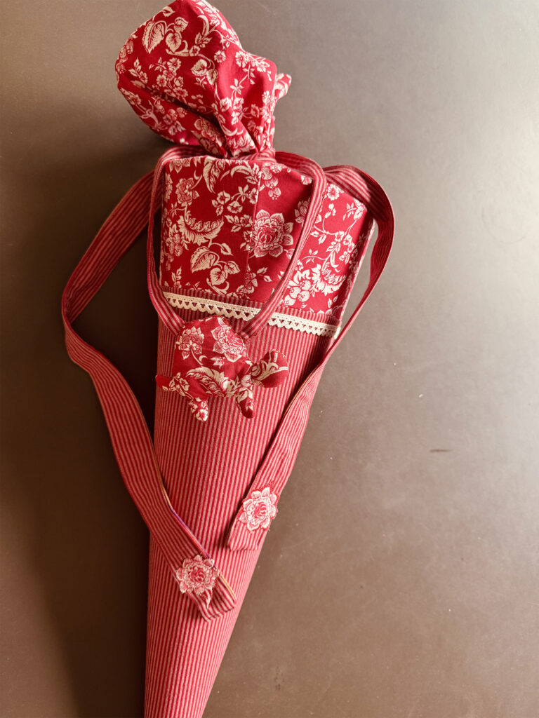 Die Schultüte in der Lieblingsfarbe, passend zum Rollmäppchen und mit Tommas Krafttier, das dann als kleiner Anhänger an den Schulranzen wandern kann.
