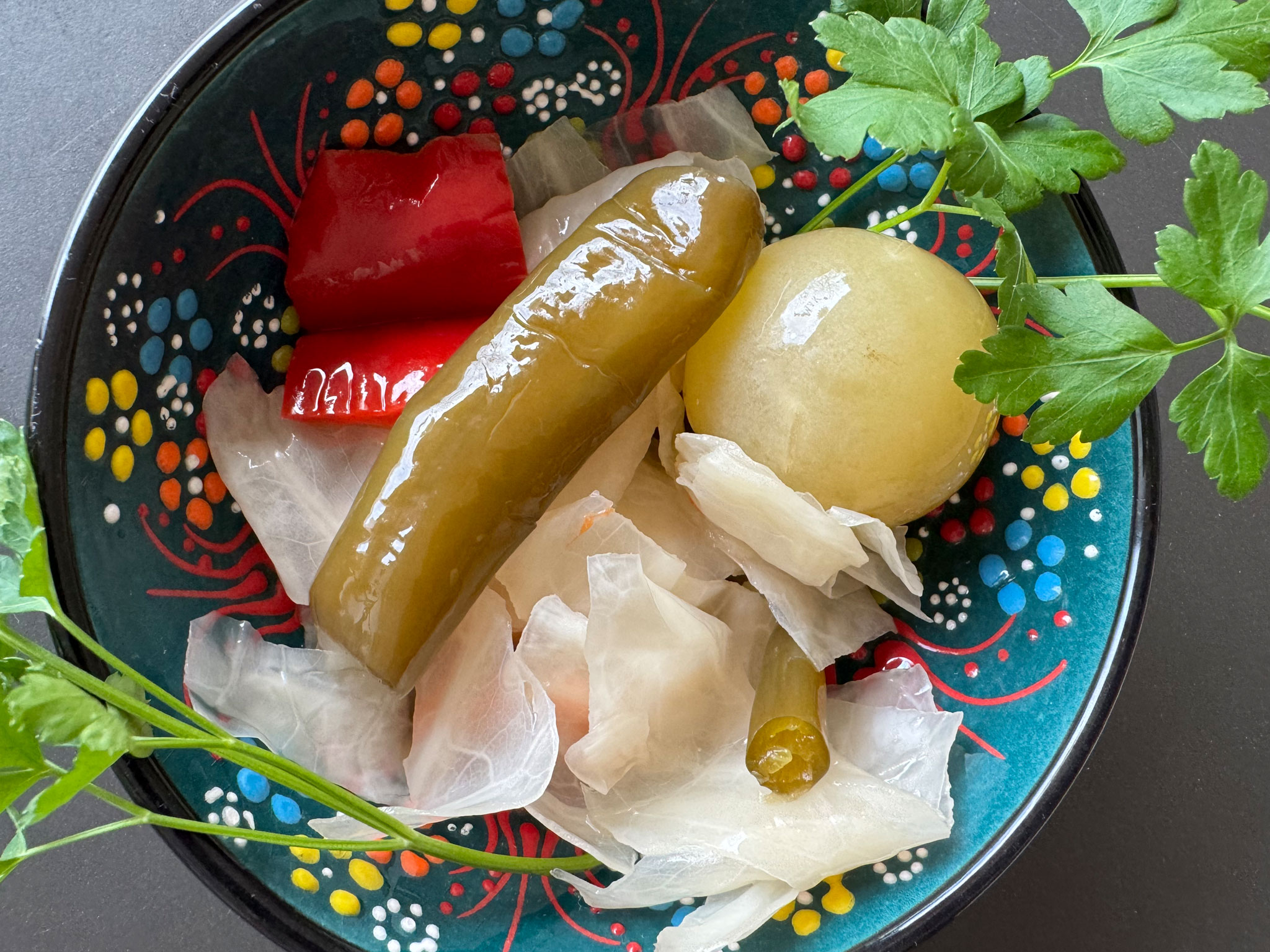 Ich liebe eingelegtes Gemüse und freu mich sehr, dass meine liebe Gülsah zu unserem Essbarkeitstreffen fantastisches Turşu mitgebracht habt und auch für mich ein grosses Glas. Es ist fantastisch knackig, lecker, vielen Dank mein Herzmensch – auch für das Rezept!