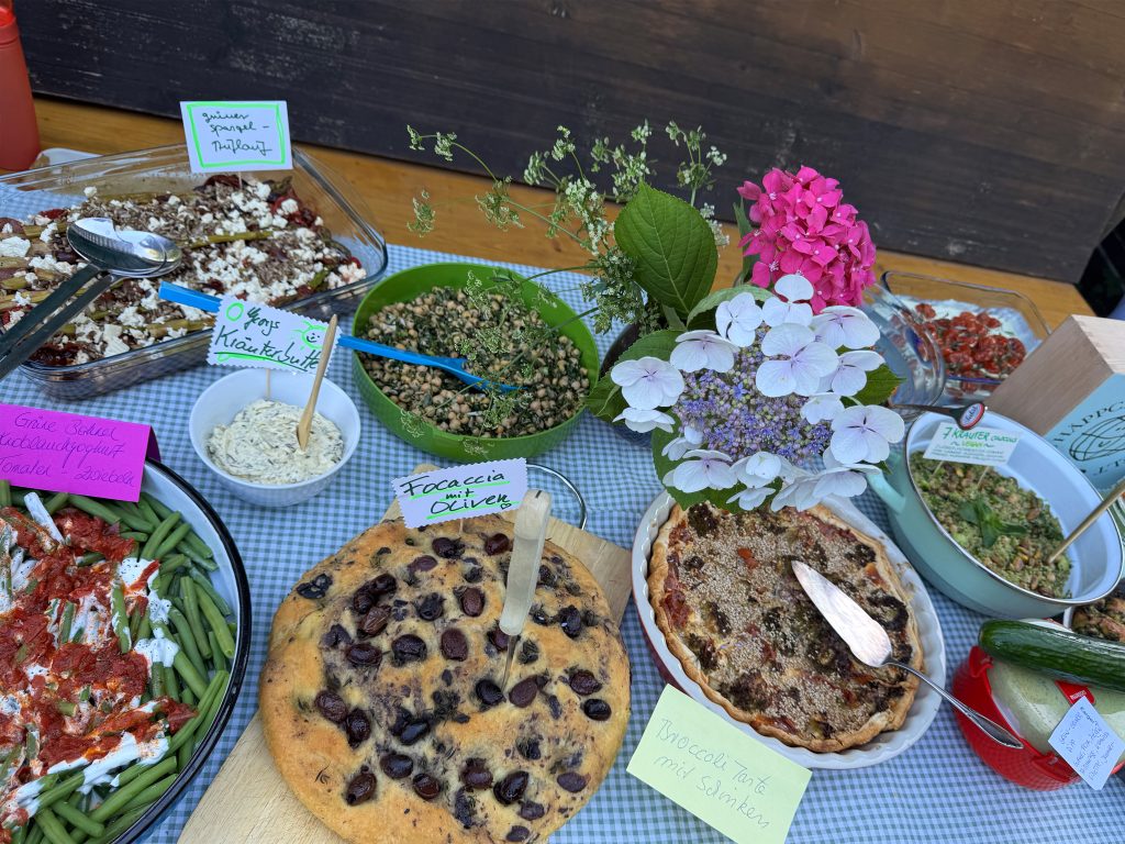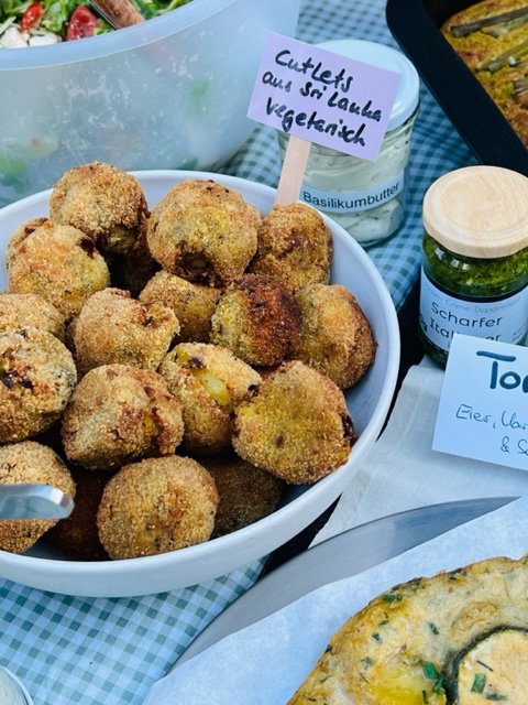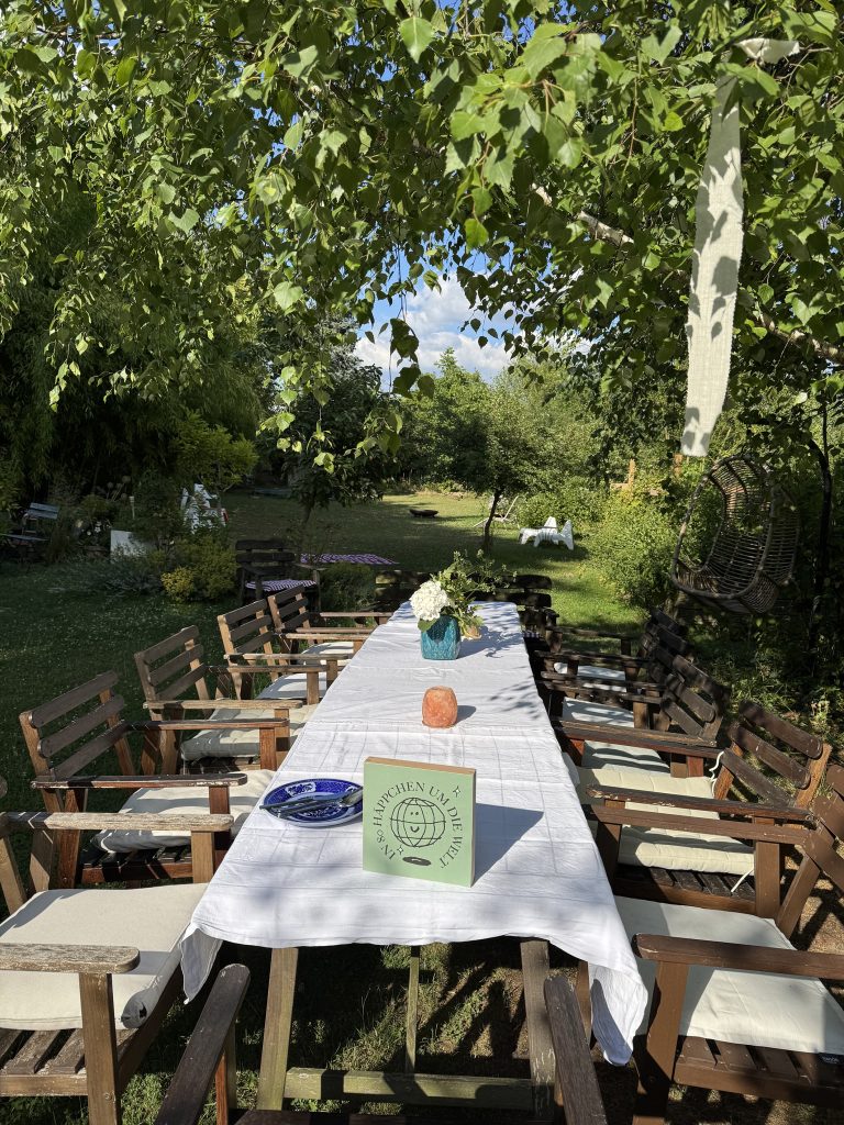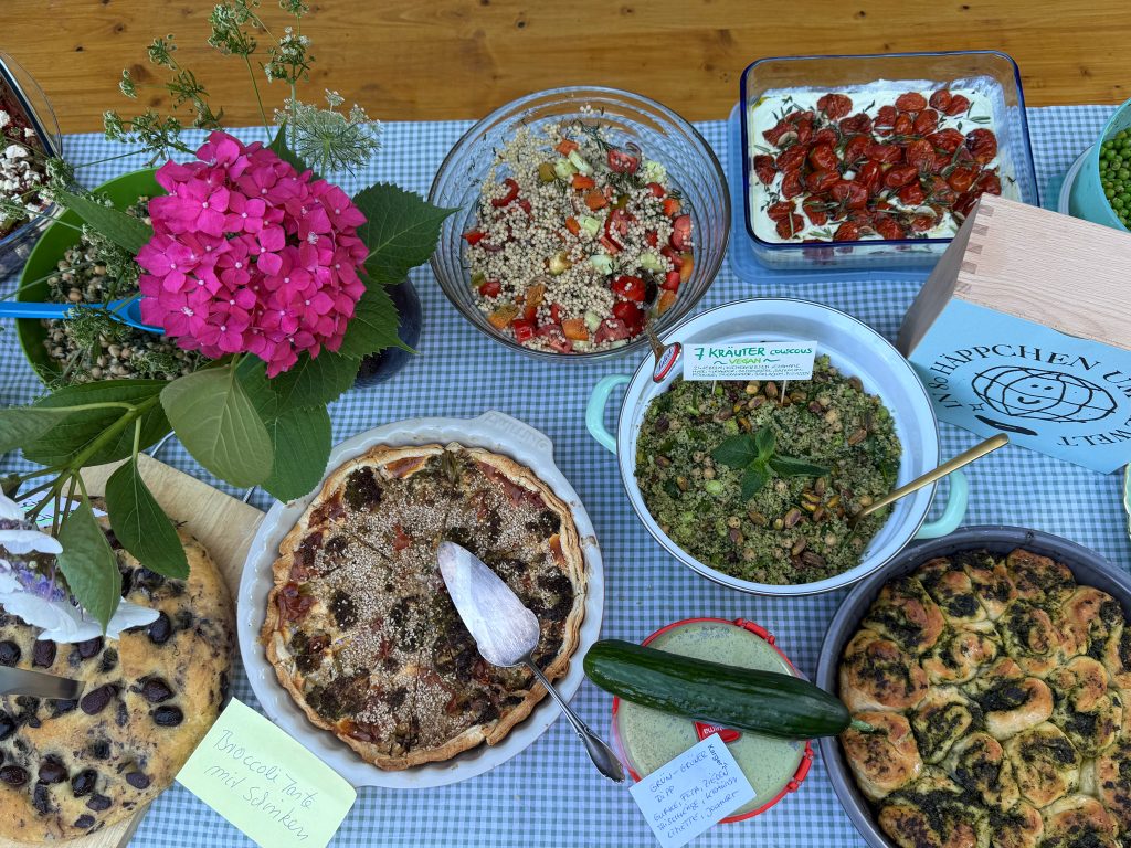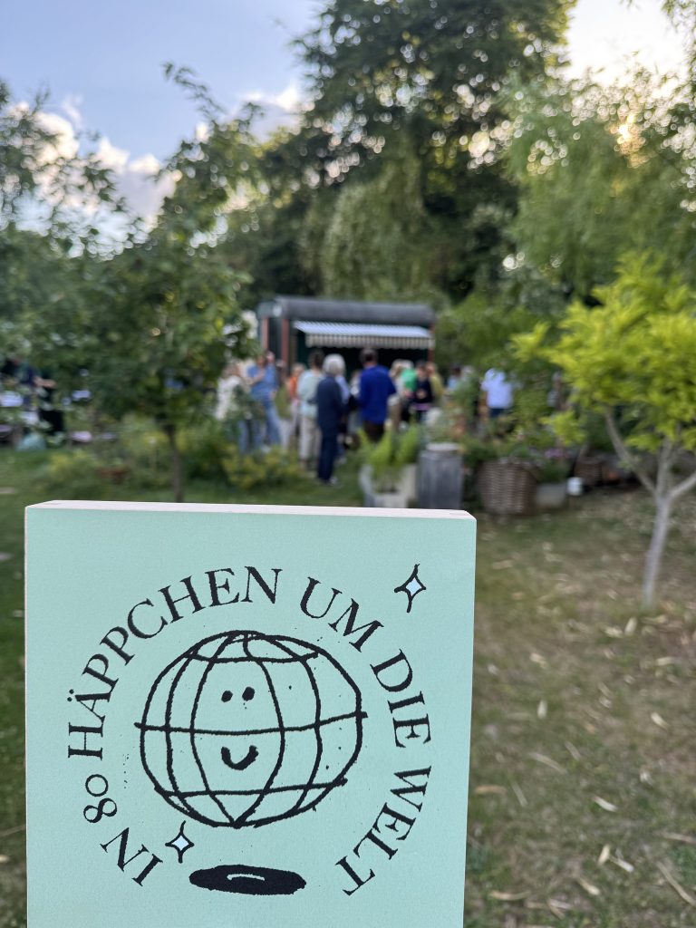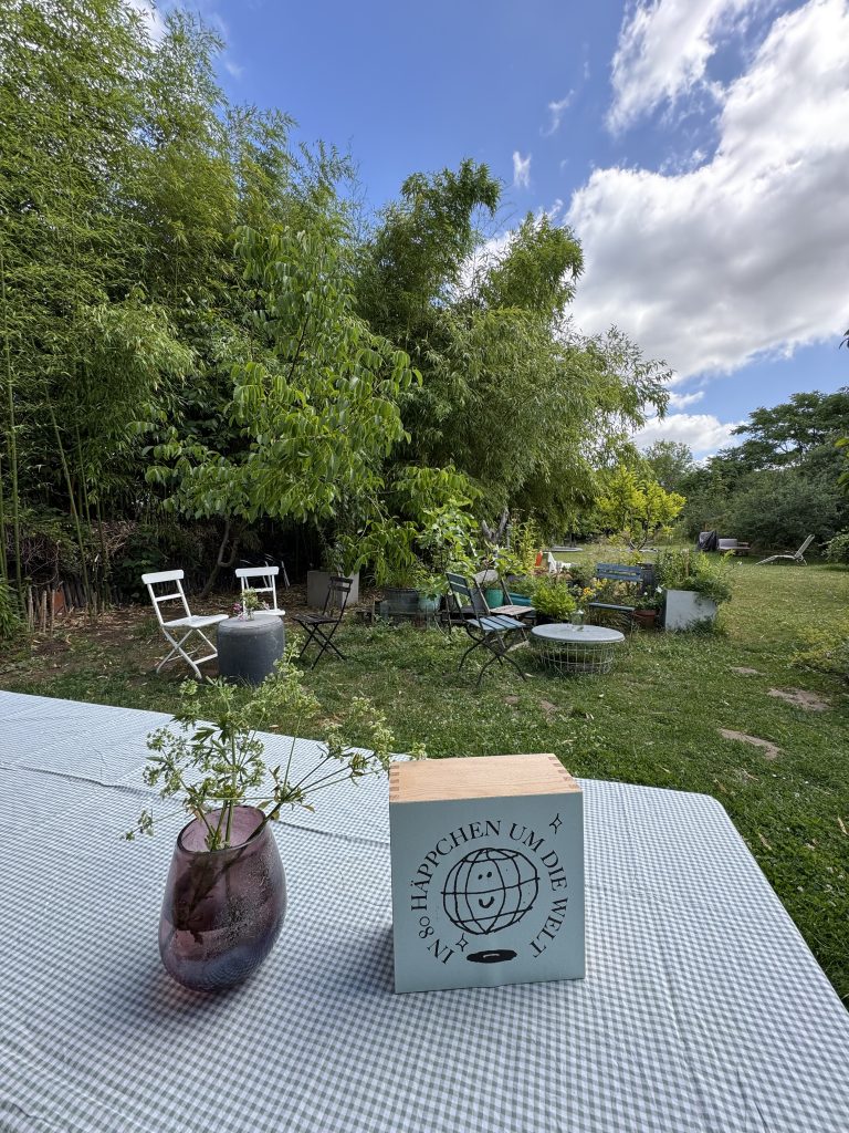 Für die zweite Ausgabe, die am 3. Juli 2025 über die Bühne gehen wird, haben wir einen nicht minder zauberhaften Ort gefunden. Wir übertreiben keinesfalls, wenn wir in die Welt posaunen, dass die Location unter freiem Himmel problemlos zur Filmkulisse taugen würde: ein weitläufiger Garten am Ufer des Rheins, mit Bauwagen, einer langen Tafel, Liegestühlen und einem Bast-Sonnenschirmchen, das im Sommerwind raschelt. Das zauberhafte Fleckchen gehört Freunden von Steffi, die unsere Anfrage, ob wir ihren Garten für unsere gute Sache nutzen könnten, umgehend mit ja beantworteten. Das Thema der zweiten „80 Häppchen“-Ausgabe wurde dann passend zur Umgebung gewählt. Es lautet „Ganz in Grün“. Gefragt sind Speisen in entsprechender Farbe: Salate, Bohnen, Frankfurter Soße, Waldmeister-Brause oder grüner Wackelpudding sind nur einige Optionen, die auf den Garten-Tisch kommen könnten. Wer eine Köstlichkeit anderer Farbe zubereiten möchte, ist aber ebenfalls herzlich willkommen. Da drücken wir gerne ein bis zwei Augen zu. Beim Konzept der Reihe sind wir übrigens ähnlich flexibel. Ursprünglich sollte ja bei jeder Ausgabe die Küche eines Landes im Mittelpunkt stehen. Das wird auch in der Zukunft bestimmt das ein oder andere Mal so sein. Aber darüber hinaus möchten wir gerne offen für andere Mottos sein. Denkbar sind Themen wie „Essen aus Songs und Filmen“, English Tea Party oder „Die Küche der Schurkenstaaten“. Einige dieser Ideen stammen übrigens von den Gästen des ersten „Häppchen“-Abends im April.