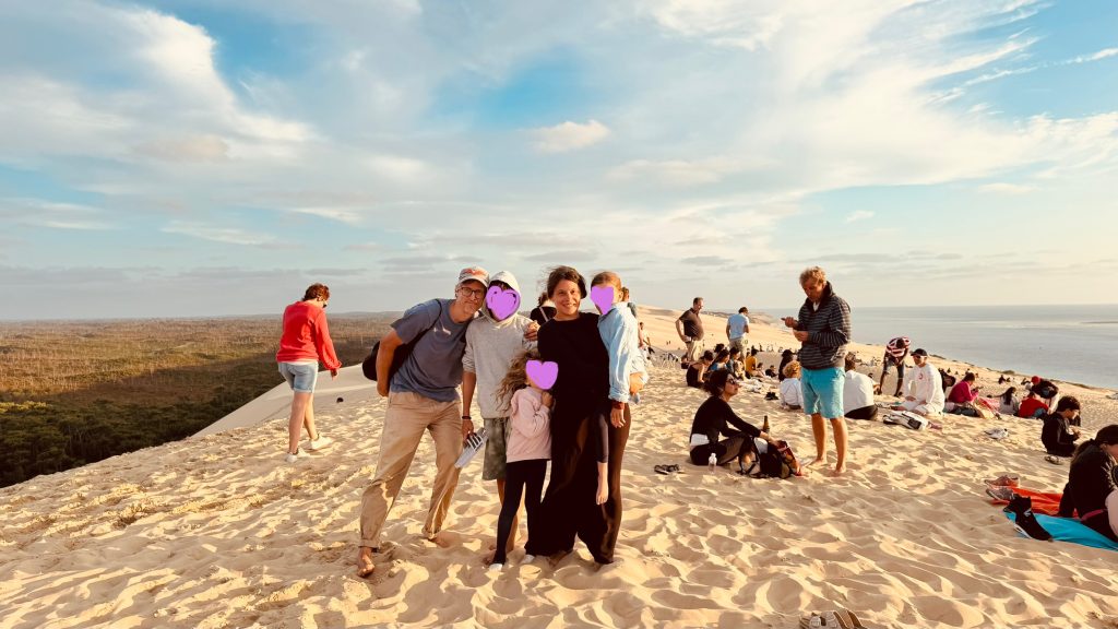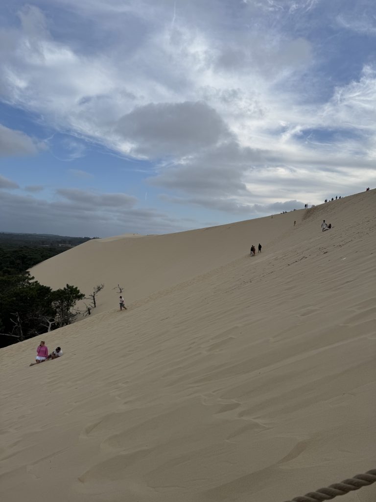 Wir haben es geschafft. Wir sind hoch auf die Dune du Pilat. Den Rolli haben wir im Auto gelassen. Lucie huckepack abgewechselt.