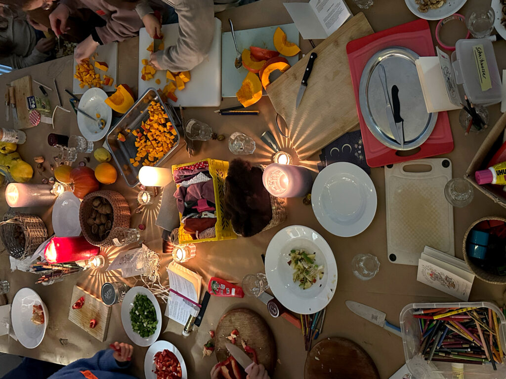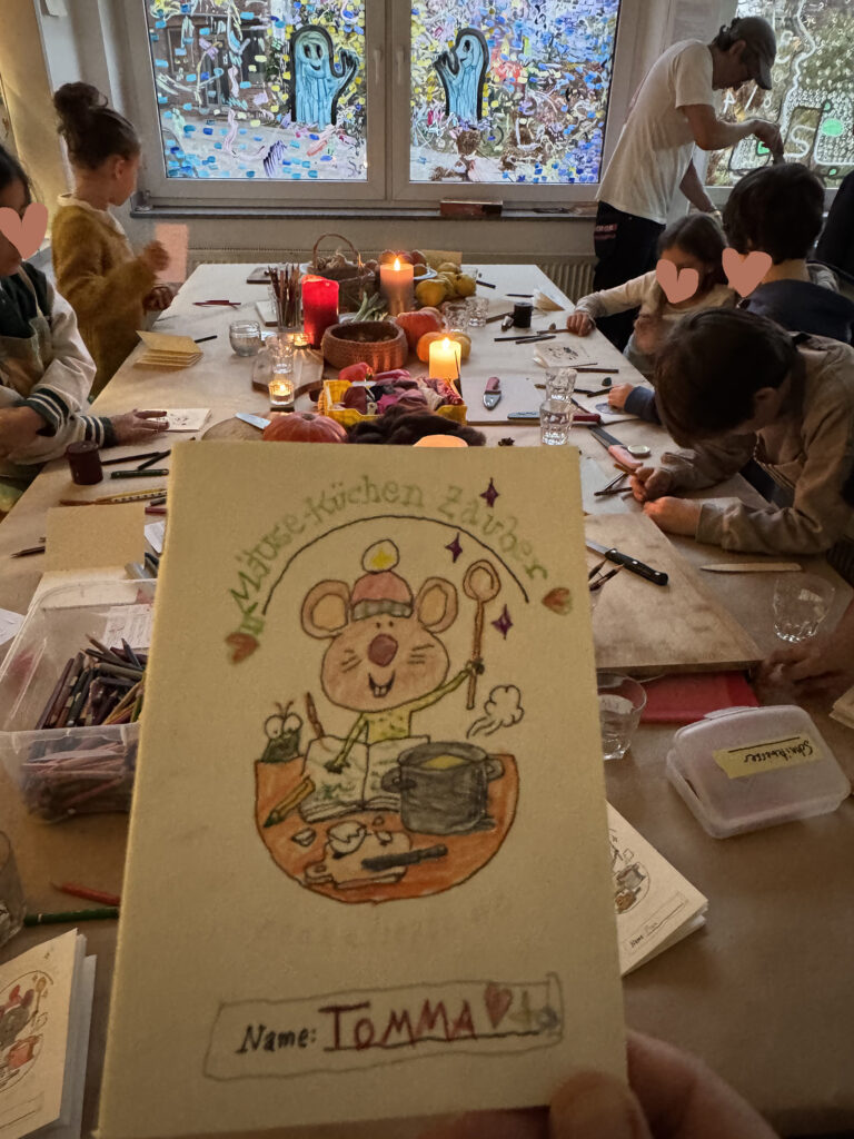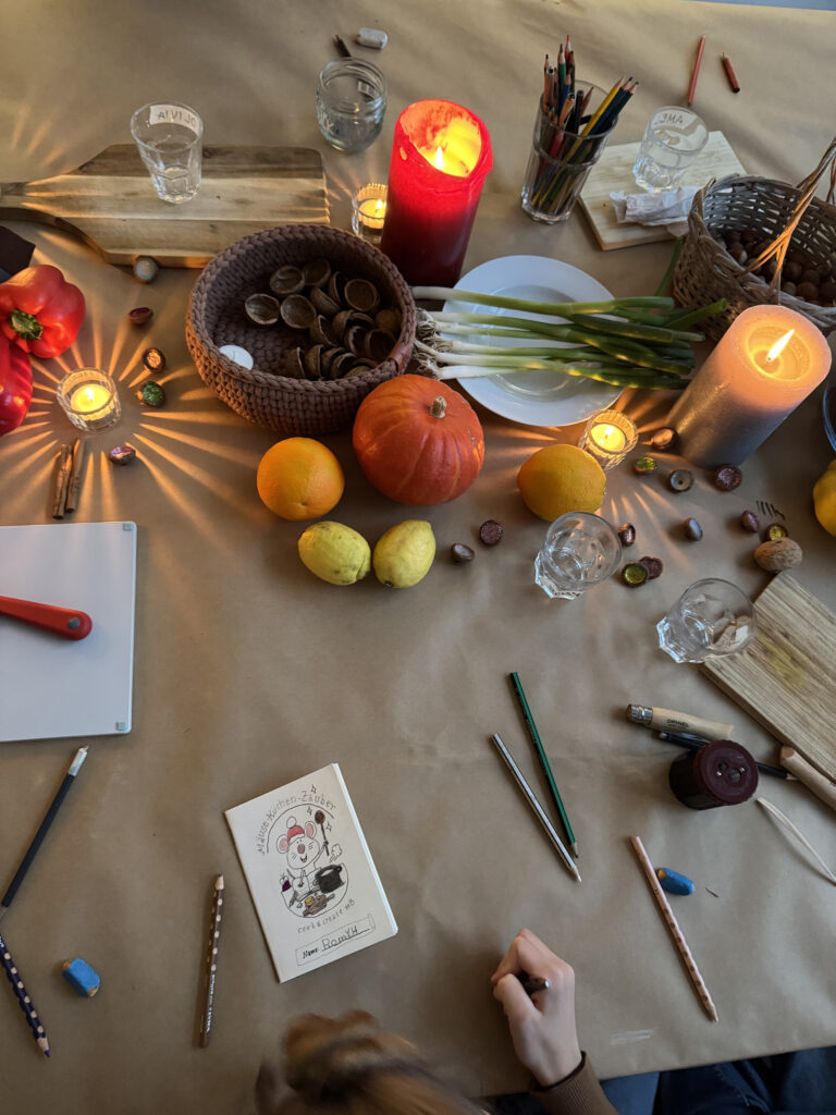 Wir laden euch ein, an einem herbstlich-bunten Cook & Create Tisch voller Düfte, Farben und magischer Momente zu werkeln. Gemeinsam backen, gestalten, zeichnen, basteln und genießen wir – von Mäusebroten, Crumble und Vanilleeis bis zu kleinen, geheimnisvollen Herbstmäusen aus Nüssen und Stoffresten. Und für eure eigenen Ideen stellen wir gemeinsam für jeden ein selbstgemachtes Heftchen her, in dem ihr Skizzen, Gedanken und Rezepte festhalten könnt.